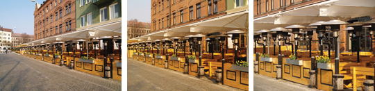 Egy adott helyről, azonos beállítással, de különböző látószögű optikával készült kép